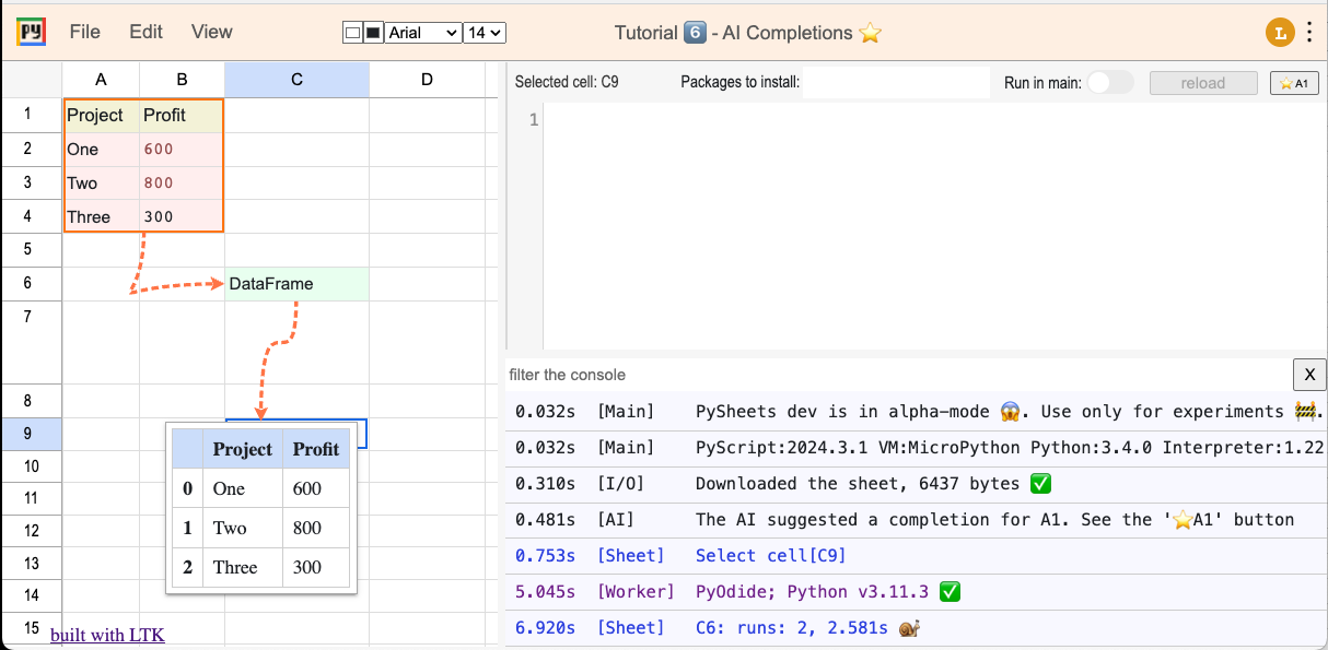 - PySheets is a spreadsheet written entirely in Python, running in the browser, using LTK.