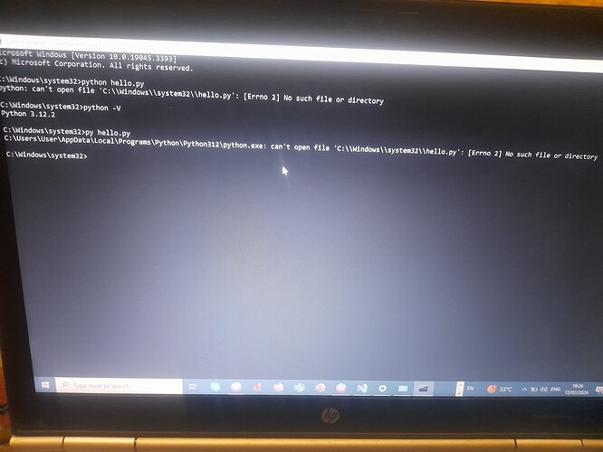 But it’s not working ‘hello’ I s the name of my file. I saved it under the fileextension .py. I don’t know what is wrong. The only thing in my code is