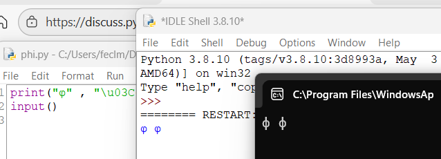 print(“φ” , “\u03C6”) affiche bien phi minuscule si exécuté dans l’environnement de développement (IDSL) mais phi majuscule à partir du fichier .py