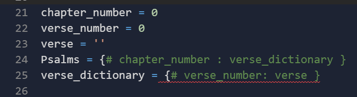 print(PsalmsDict) # debugging ouput statement