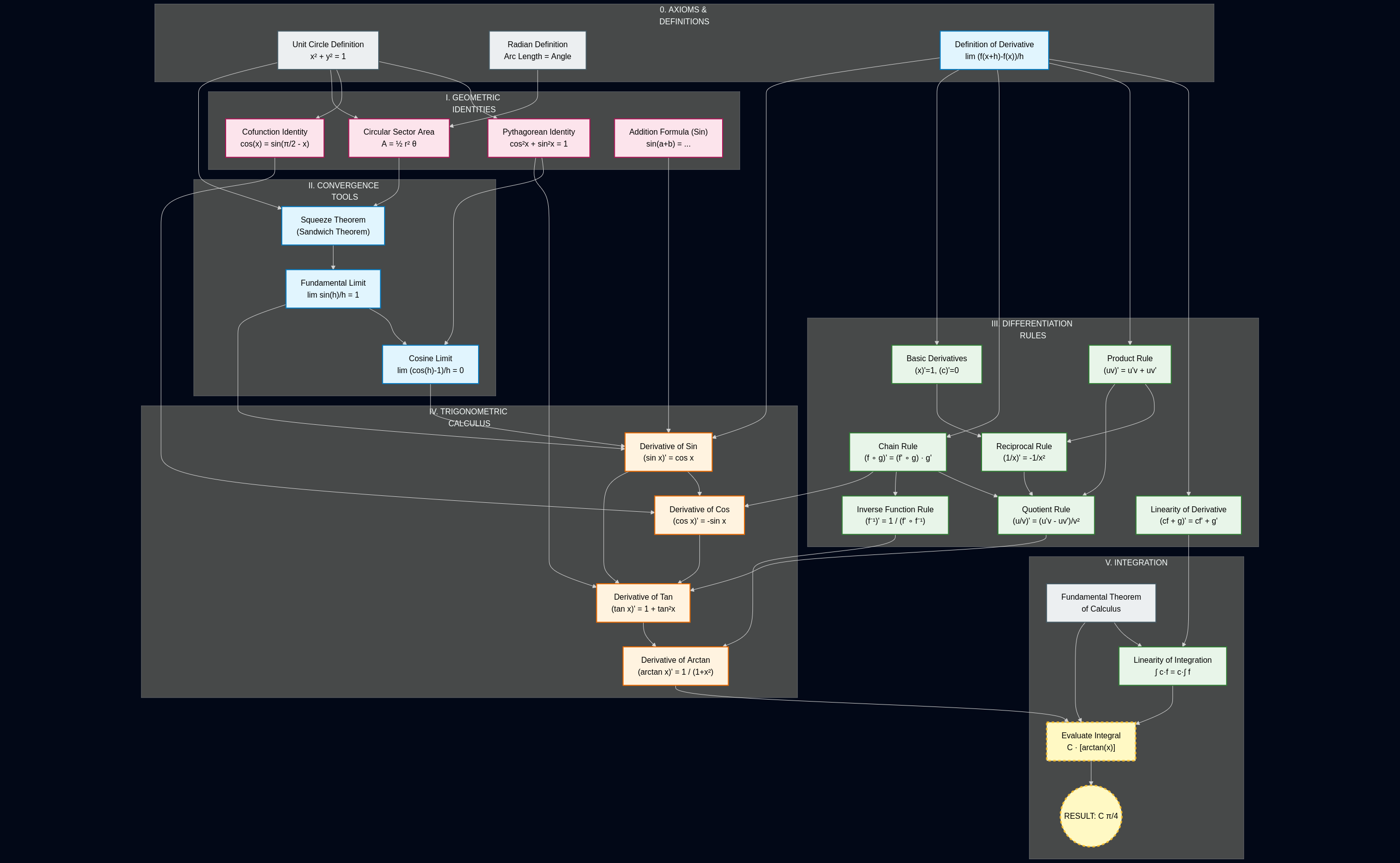 One of my favorite use of AI tools is to generate mermaid dependency graphs for math results, and in that case it nicely applies to the 1/(1+x²) integral: