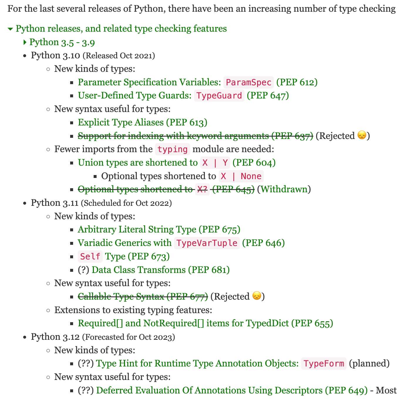But that said, I’m not aware of a PEP that changes only how type checkers work, without changing any core Python. Maybe it’s best to get this all hammered out in one go? Would value insight from PEP experts.