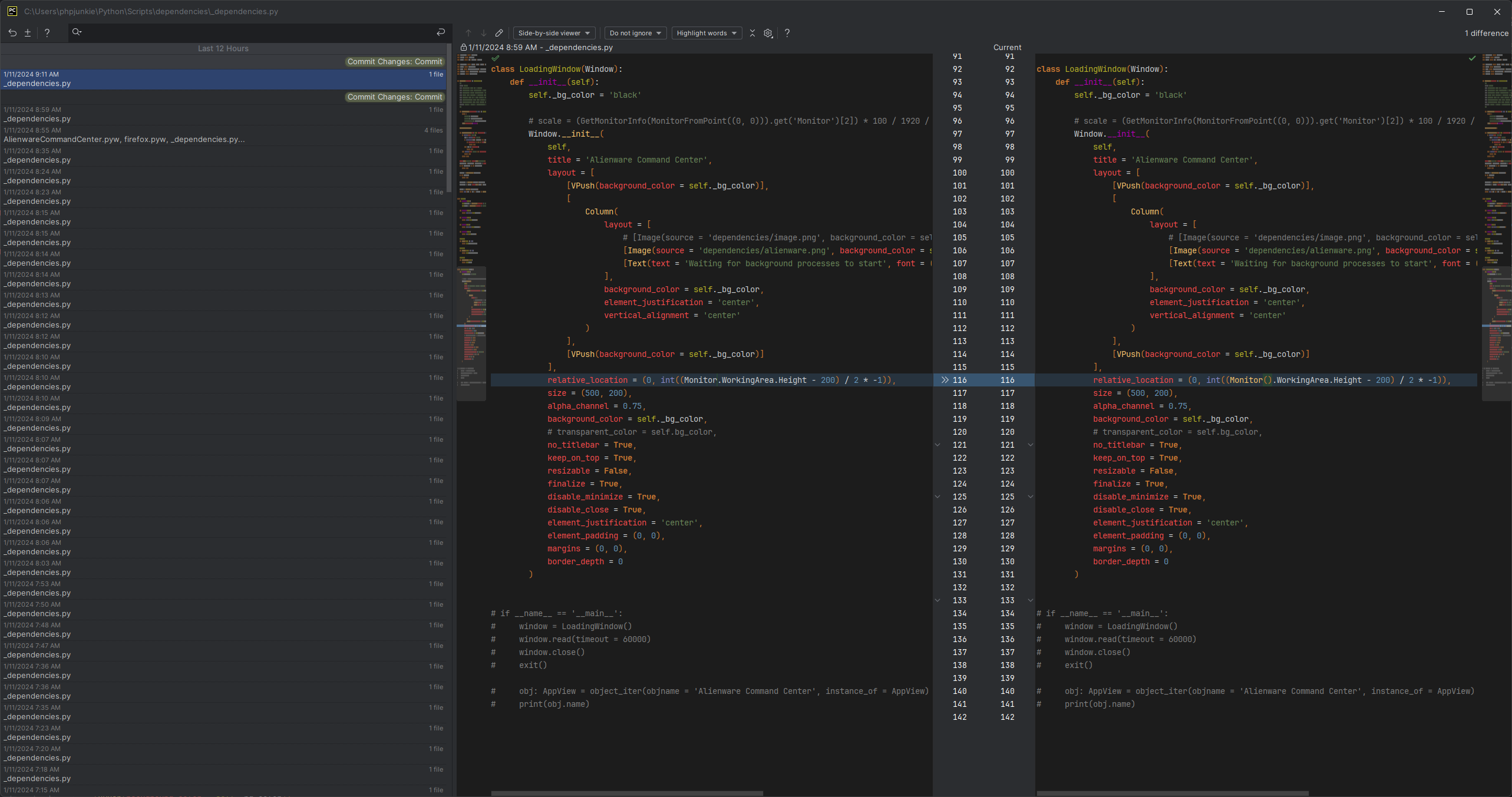 I do not see a file change indicator anywhere in the Pycharm window, in the project list or near the code file itself. Does Pycharm have any indicator that tells me if the code has been changed but not saved?