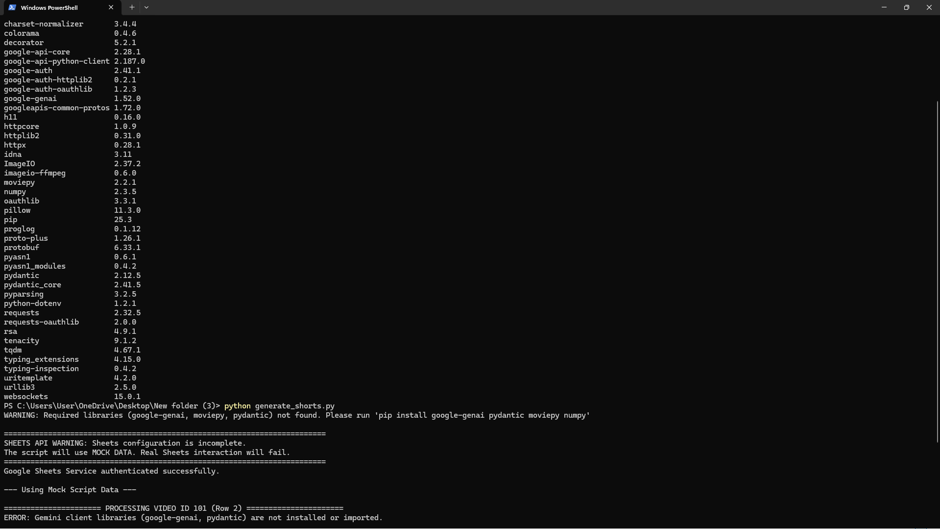 Where are you trying to install these packages? Are you using a virtualenv? If not, I strongly recommend that you start using one. You can start learning how with the venv docs: venv — Creation of virtual environments — Python 3.14.0 documentation