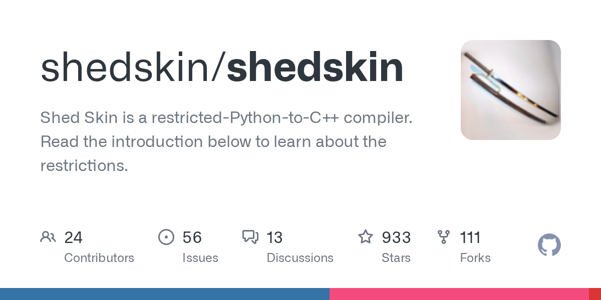 Perhaps try changing your repo “About” text from “Shed Skin is a restricted-Python-to-C++ compiler …” to “Shed Skin lets you run many Python programs up to X times faster. Read the introduction to find out how, and which ones.”